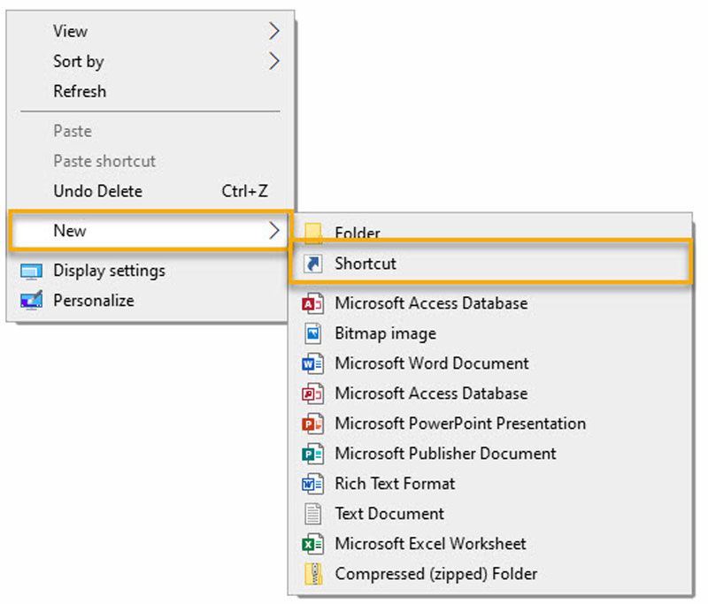 First, right-click the mouse on your desktop. This calls up a context menu from which a new link can be created.