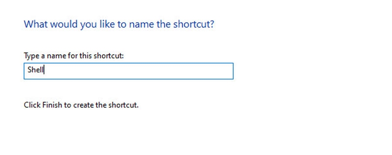 Then name the shortcut in the second dialog box to Shell.