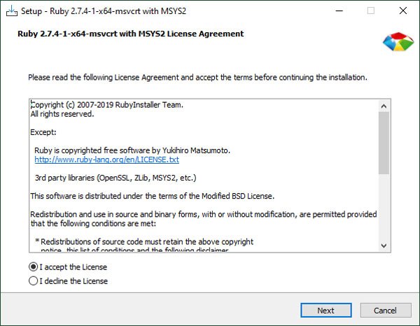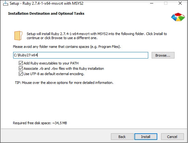The procedure for installing Ruby is very similar to installing NodeJS. Since the installation steps are the same in some parts, the description is a little more compact and skips some parts that you already know.