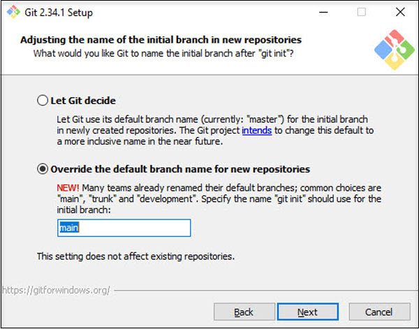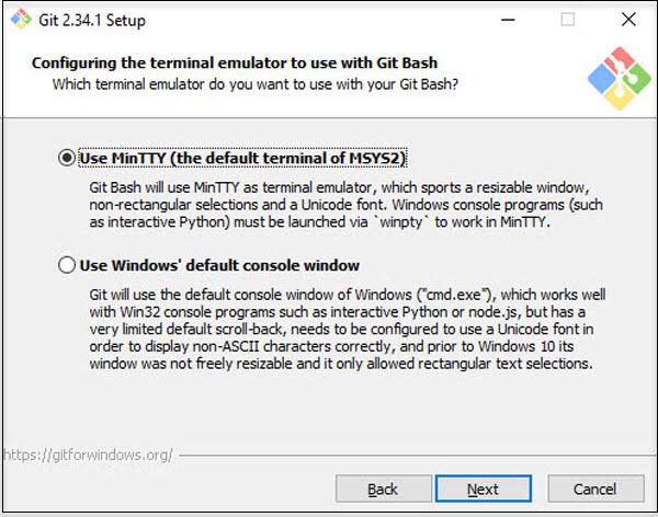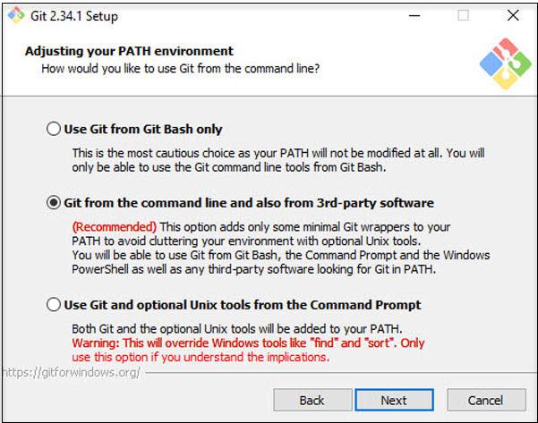 | The Git versioning system is originally developed on Unix systems like Linux. Git on Windows uses native Unix/Linux commands under the hood supported by a compatibility system called MSYS. Like the command The default option is highly recommended to avoid conflict running commands having the same name. |