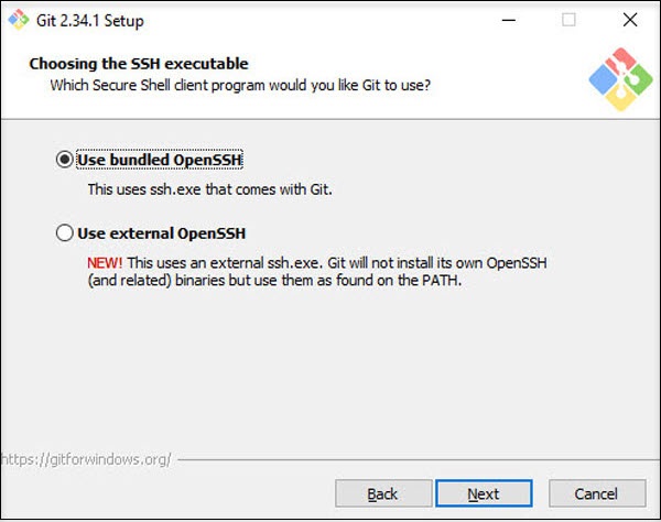 | As already mentioned, Git has its roots in Unix. On Unix-like systems, the Secure Shell (SSH) subsystem is widely used to establish secure and encrypted connections. On Windows, no SSH subsystem is build-in. In most cases using Git on Windows, the default option (use of the bundled OpenSSH subsystem) should be used. |
