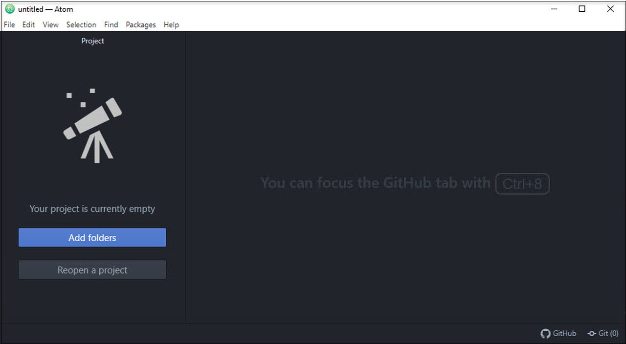 The installation of the Atom editor is done very quickly. A large number of useful presettings are made automatically by the installer. After the installation is complete, very few settings are required and the editor is ready for use.