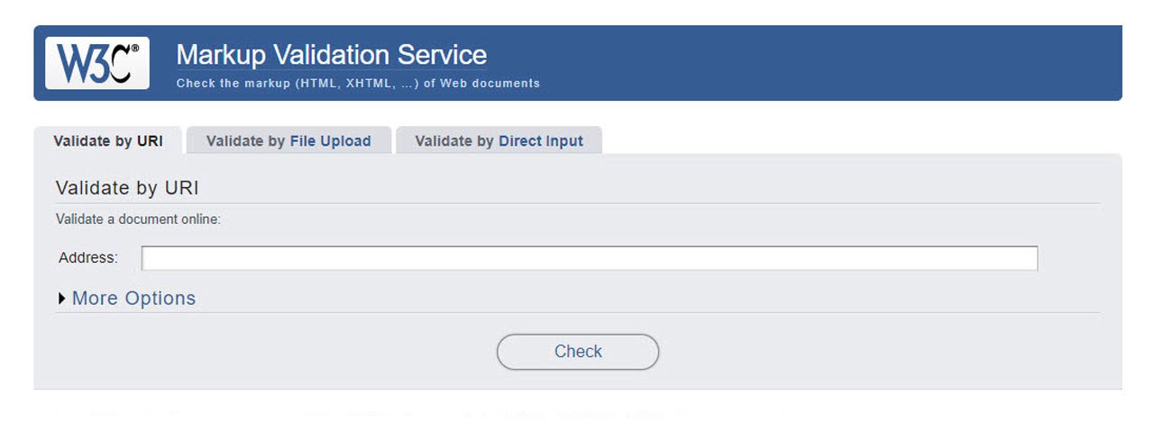 enter the URL of the web page to be checked, upload the HTML code as a file, or enter the code directly